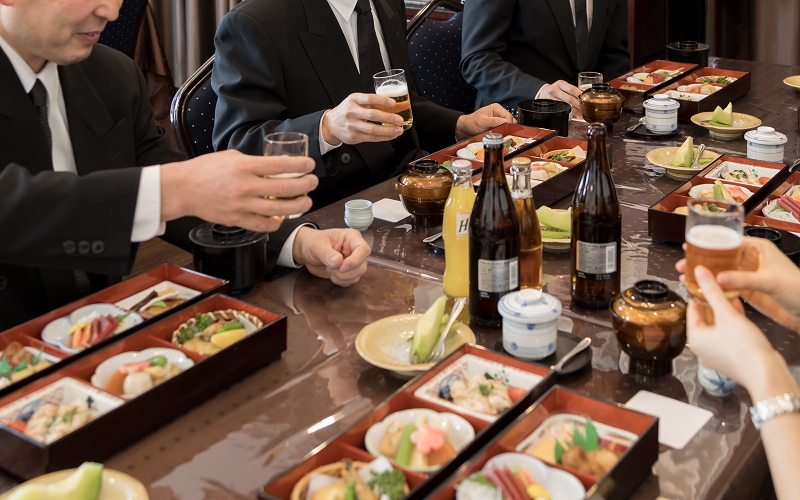 火葬を終えた後(火葬中)に僧侶や参列者へ精進落としをふるまいます。お食事の席ではご葬儀でお世話になった方へ感謝の気持ちをお伝えしましょう。